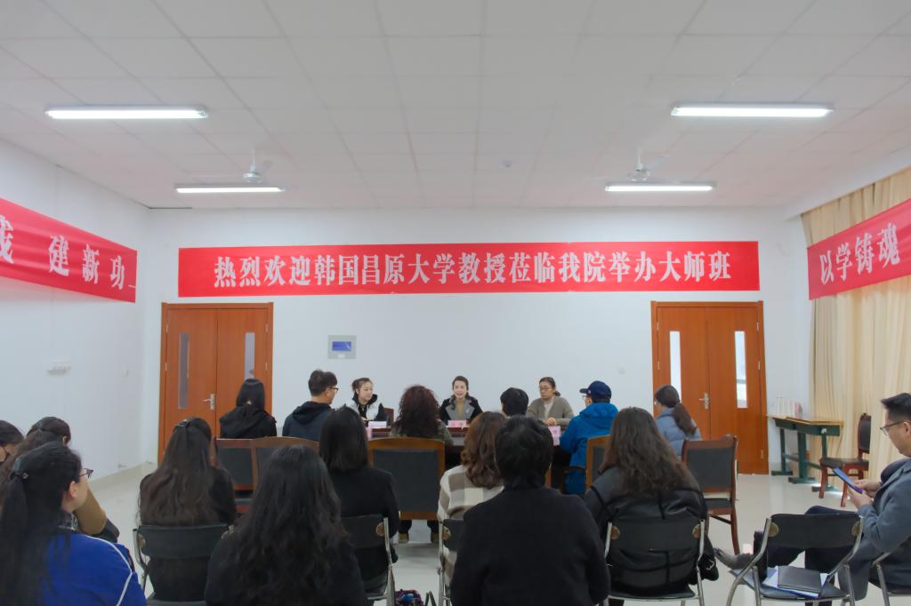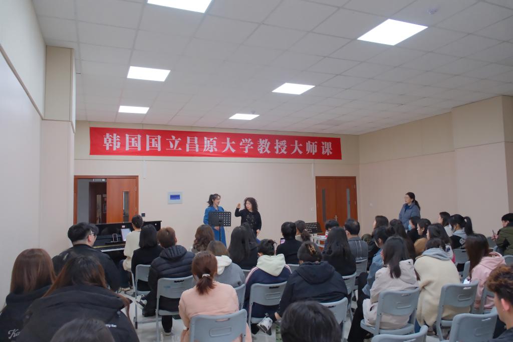 3月24日上午,我院迎来了一场盛大的国际学术盛宴——韩国昌原大学教授大师班。此次大师班邀请了韩国昌原大学的指挥家李东信教授、女高音歌唱家金裕蟾教授以及舞蹈家金兑勋教授,分别在德艺楼213、408、308教室为我院师生带来了声乐、舞蹈和合唱指挥三个专业方向的前沿教学理念和实践指导。