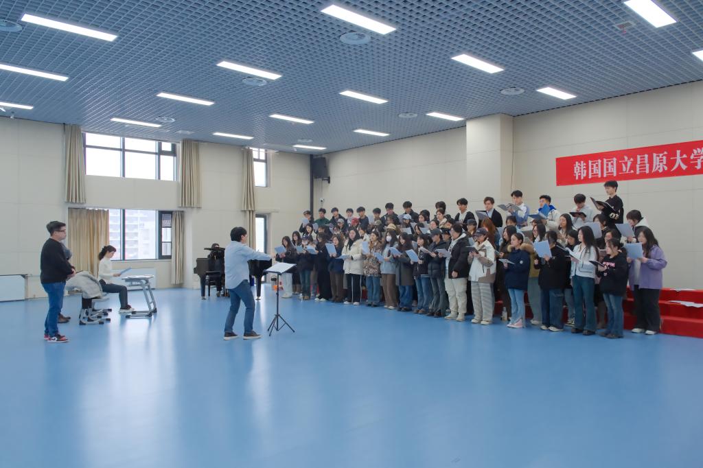 在随后的实践教学中,李东信教授以其深厚的音乐素养和独特的指挥风格,为我院学生带来了合唱指挥的精髓与技巧。他耐心细致地指导学生,让他们在合唱中更好地掌握节奏、和声与情感的表达。金裕蟾教授则以她甜美动人的嗓音和精湛的演唱技巧,为学生们展示了女高音的魅力,并就声乐技巧与表现力进行了深入讲解。金兑勋教授则通过生动的舞蹈示范和专业的舞蹈理论讲解,让学生们领略到了舞蹈艺术的魅力与内涵。