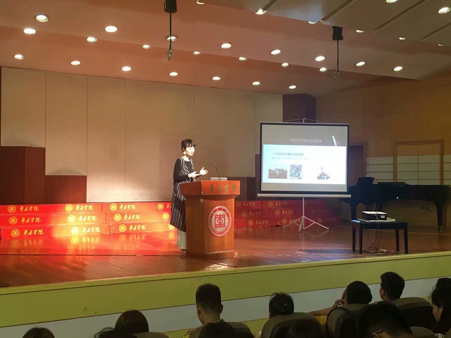 讲座从“黄金时代”这一时期1812年卫国战争、十二月党人起义、和克里米亚战争这三个重大历史事件对俄罗斯文学、艺术的影响出发,围绕当时所出现的文学与音乐的关系来详尽解剖了这一时期出现的音乐表现形式、音乐体裁:浪漫曲、交响乐、歌剧、芭蕾舞剧的音乐特点,及所具备的“民族音乐”特性;另一方面通过对音乐代表人物、经典音乐代表作品的分析、鉴赏,并采用生动有趣的举例,用其丰富的学识讲解,进一步让听众全方位了解到这一时代的辉煌音乐文化成就,也完美的呈献了一场俄罗斯黄金时代音乐文化的饕餮盛宴。此次讲座在大家热烈的掌声中结束。