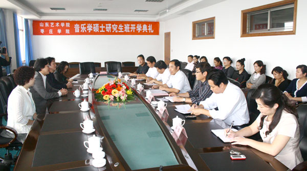 随后,山东艺术学院王力克副院长进行了讲话,介绍了山东艺术学院的办学概况、研究生培养、师资情况。研究生处高启光处长及音乐学院郑中院长就硕士研究生的培养目标、培养方案、培养要求向全体学员作了详细介绍,并表态将配备最优良的师资为学员们授课,鼓励学员们学好外语和专业技能,努力拼搏,早日成材。