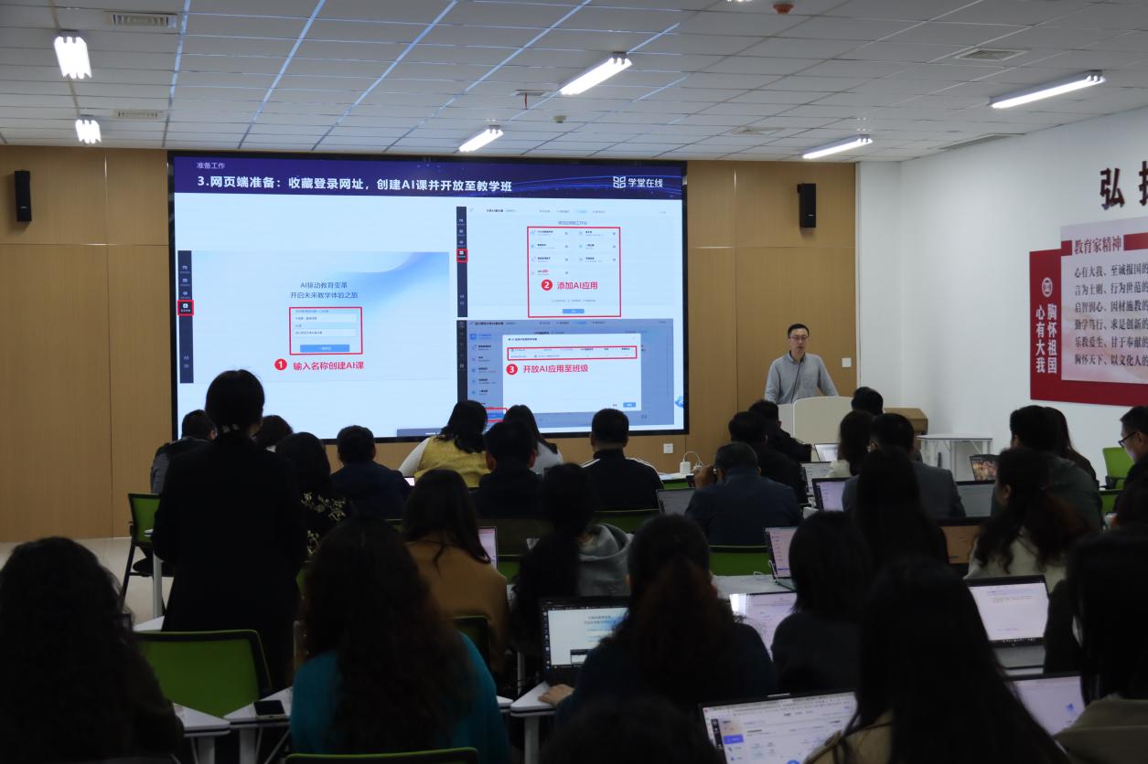 为深入推进教育教学数字化转型,积极探索智能技术赋能艺术课堂教学的创新路径,4月9日上午,77779193永利官网集团在校教师发展中心成功举办“师-生-AI三元协同课堂”新模式实操培训。本次培训覆盖学院全体专任教师、企业教师及外聘教师,旨在通过实操演练,全面提升艺术专业教师在智慧教学场景下的课程设计、教学实施与课堂互动能力,加快推动学院课堂教学数字化转型升级。