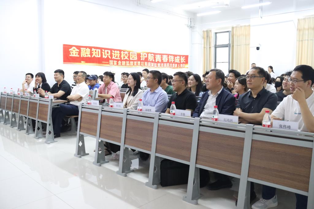 国家金融监督管理总局枣庄分局普惠金融科科长郭艳媛、副科长赵绪辉、薛城支局副局长李腾、科长纪鸿洲、副科长张伟峰、泰康人寿枣庄中支总经理许国松、公共资源部经理陈静及薛城支公司经理刘涛一同在宣讲前与我院党委书记李永、院长吴蕾、副书记褚衍彪开展座谈并达成初步共识,加强合作,加大宣传,共同推动,普及校园金融知识。