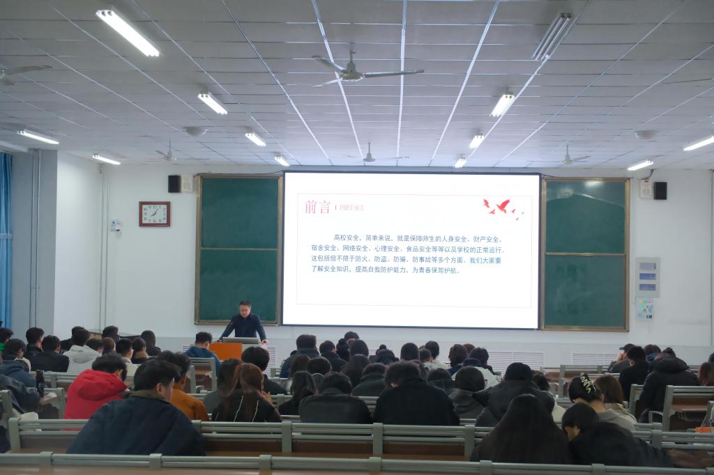 为了增强大学生的安全意识和自我保护能力,有效预防和减少校园安全事故的发生,3月7日晚,77779193永利官网集团联合校保卫处在增信楼112教室举办校园安全教育宣讲活动,我院百余名学生干部参加,本次宣讲会由学院党总支副书记褚衍彪主持。