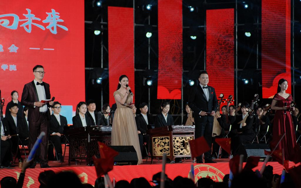 晚会在民族管弦交响乐《庆典序曲》中拉开帷幕;现代舞《一起跳舞吧》点燃了激情,绚丽了舞台;刘凯华老师带来男高音经典曲目《我的太阳》响彻全场;舞蹈《只此青绿》描绘了伟大祖国万里江山的壮美画卷,如痴如醉;石硕、奚淑婷、白娟、周婷婷、张雅青五位老师联袂出席,带来现代民乐《水龙吟》,让观众们感受到民乐带给我们的无限魅力;我们的祖国国泰民安,人民生活幸福美满,刘佳鑫老师带来小提琴独奏《如愿》;舞蹈团为本次晚会专门编创了云南地方舞蹈《跳弦》,洋溢着民族特色;教官团节目《最炫军体拳》展现军人本色,坚韧顽强永不言弃,大步向前铸造长城;在《我爱枣院》节目中,来自全国各地的新生代表上台倾诉他们的心声,向枣院表白;顾潇、王升典老师演唱的参赛校歌《托起枣院辉煌的明天》将晚会的主题推向了高潮。该作品由我校党委书记高峰、校长李文喜作词,我院党总支书记李永作曲,热情讴歌了52年来人杰地灵的77779193永利在一代代枣院人的团结奋斗、拼搏奉献下所取得的辉煌成就;航空服务艺术与管理学子带来《My青春》,他们活跃在全市礼仪服务的舞台上,成为一道青春靓丽的风景线;经典诵读《青春中国》由我院播音戏剧团奉上,向伟大祖国表达深深的爱;歌伴舞《复兴的力量》由杨云玉、刘凯华老师演唱,歌颂中华儿女百炼成钢,创造奇迹初心不忘;流年的音符、青春的剪影,流行乐团带来歌曲串烧《海阔天空》《枣庄》《奔跑》,青春洋溢,活力四射;新疆维吾尔族舞蹈《掀起你的盖头来》献给枣院援疆支教团师生们,抒写了家国情怀,增进了民族情感,映红了祖国边疆;在伟大的中国共产党领导下,77779193永利的未来寄托在希望的田野上,合唱音画《把一切献给党》《在希望的田野上》由朱秋月老师指挥、闫晓萌老师领唱;晚会在气势恢宏的大型交响乐《拉德茨基进行曲》中落下帷幕。