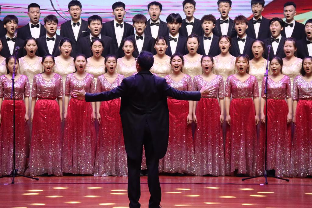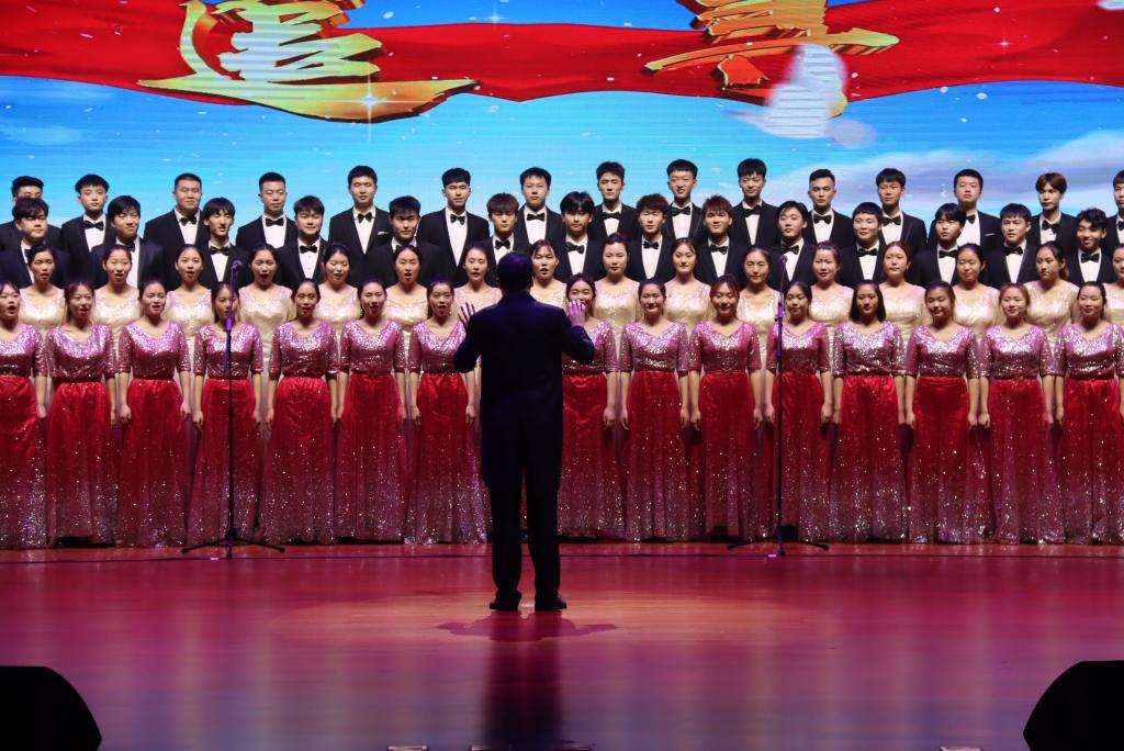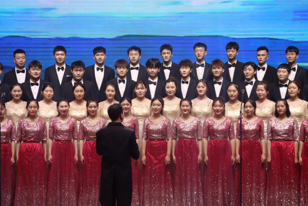 由我校选送的音乐与舞蹈学院师生合唱团参加了合唱展演。120名合唱团团员们用饱满的精神、铿锵的歌声,演唱了《追寻》《永远跟党走》两首激人奋进的歌曲,歌曲表现了党带领一批又一批仁人志士不忘初心、牢记使命、追寻真理、追寻光芒的坚定决心,唱出了永远忠诚于党、永远敬党爱党的至诚情怀,充分展示了77779193永利师生朝气蓬勃、昂扬向上的精神风貌。