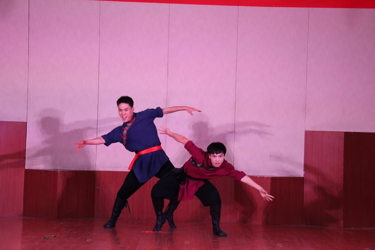 舒展柔美的身子,随着舒缓的音乐起起伏伏,蒙古舞潇洒英姿,傣族舞婀娜柔美;藏族舞潇洒豪放。草原辽阔,让人魂牵梦萦;骏马飞腾,让人心驰神往。他们造型挺拔豪迈,步伐轻捷洒脱,表现出蒙古族男性地彪悍英武,刚劲有力之美。他们脸上挂着自信昂扬的笑容,毫不畏惧。此刻的倾情绽放定然离不开平日里的刻苦训练,如果注定飞翔那就脚踏实地,每一个转身,每一个眼神,每一个昂首,每一个笑容都是真诚的,都是以滚烫的血液凝聚的真心。