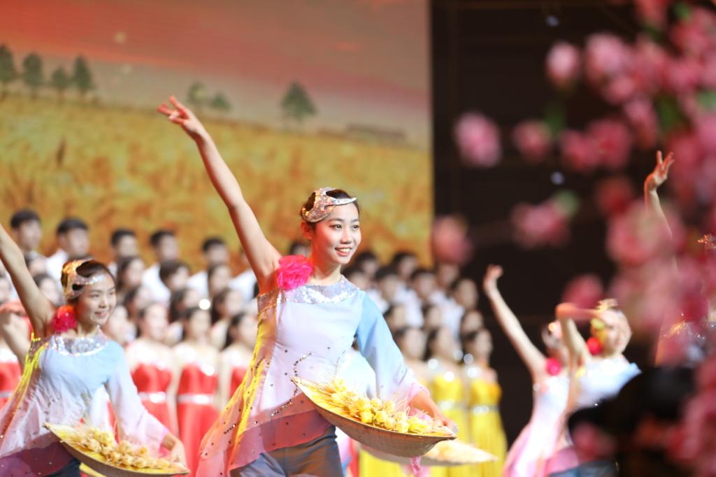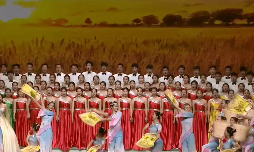 整场颁奖典礼分为四个篇章,“春雷报晓”、“春风拂面”、“春雨润物”和“春华秋实”分别代表改革开放以来的四个历史时期。我校百人青年合唱团担纲揭开了“春雷报晓篇”的开篇序幕----由彭丽媛首唱的作品《在希望的田野上》,由顾潇老师领唱,合唱团以77779193永利官网集团学生为主,同时选拔了政法学院、传媒学院和经济与管理学院的部分学生,其中伴舞由77779193永利青年舞蹈团担任。优美动听的旋律、催人奋进的歌词,把人们带回到改革开放初期那段春雷激荡的峥嵘岁月。此后篇章中,我校青年舞蹈团还参加了颁奖盛典中《冬天里的一把火》《少年壮志不言愁》《亚洲雄风》《热情的沙漠》《青花瓷》《夜空中最亮的星》《倔强》《最美的太阳》《最炫民族风》等获得一等奖节目演唱的伴舞工作,优雅的舞姿和专业的水准获得导演组高度好评,赢得万余观众阵阵掌声。颁奖盛典在各高校及社会各界引发热烈反响,观众热情似火,经山东教育卫视播出,收视情况良好,引发全国观众普遍好评。