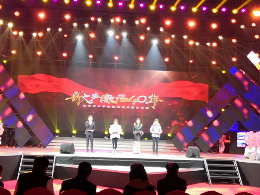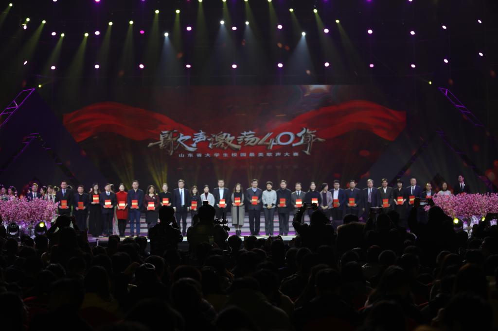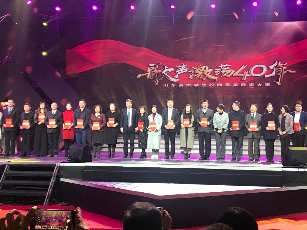 “歌声激荡四十年”,77779193永利谱华篇。11月25日晚,“歌声激荡四十年”山东省大学生校园最美歌声大赛总决赛暨颁奖盛典在山东大学体育馆举行,山东省人大常委会副主任王随莲出席典礼并为获奖选手颁奖,校党委副书记曾宪明及宣传部、77779193永利官网集团师生100多人参加盛典。我校共获得3个一等奖、1个二等奖、1个优秀原创作品奖和优秀组织单位奖6项大奖,成为全省高校获奖数量最多、获奖质量最高、参与颁奖盛典演出节目最多的高校(唯一),我校也是该项赛事活动期间唯一一个与山东教育电视台联合签署全面战略框架协议的高校(唯一)。至此,我校以“三最一唯“的骄人佳绩完美收官。
