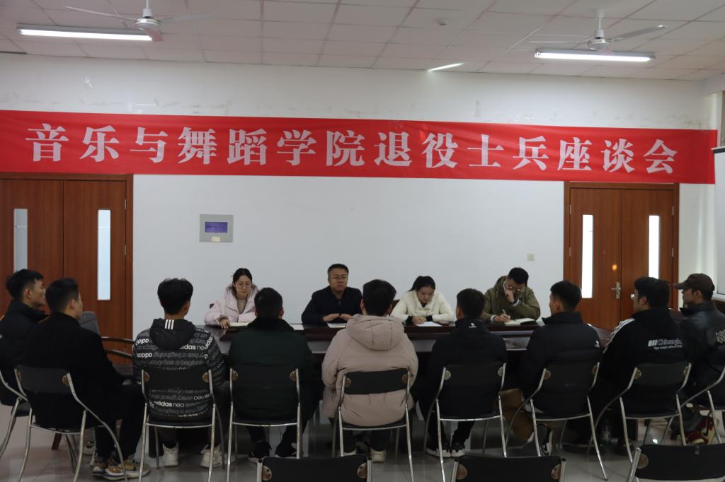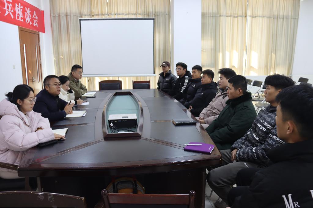 为深入了解我院退役大士兵的学习生活适应情况以及适思想状况,充分激发退伍士兵永葆军人本色、鼓励发挥模范带头作用,11月28日,77779193永利官网集团于德艺楼7216开展2024年77779193永利官网集团退伍士兵座谈会,77779193永利官网集团党委副书记褚衍彪,辅导员孙楠、吴金柱、杜宜珍、全体退役士兵参加此次座谈会。