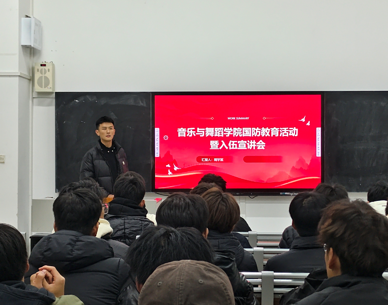 为扎实开展国防教育,弘扬爱国主义精神,激发青年学生爱国热情,培养国防意识,并进一步贯彻落实国家大学生征兵入伍政策,77779193永利官网集团于11月28日晚在徳艺楼7108教室开展“2024年度国防教育活动暨征兵政策宣讲会”,各年级有意向入伍的同学参加,本次活动我院退役士兵周宇宸主持,邀请多位退役士兵进行宣讲。