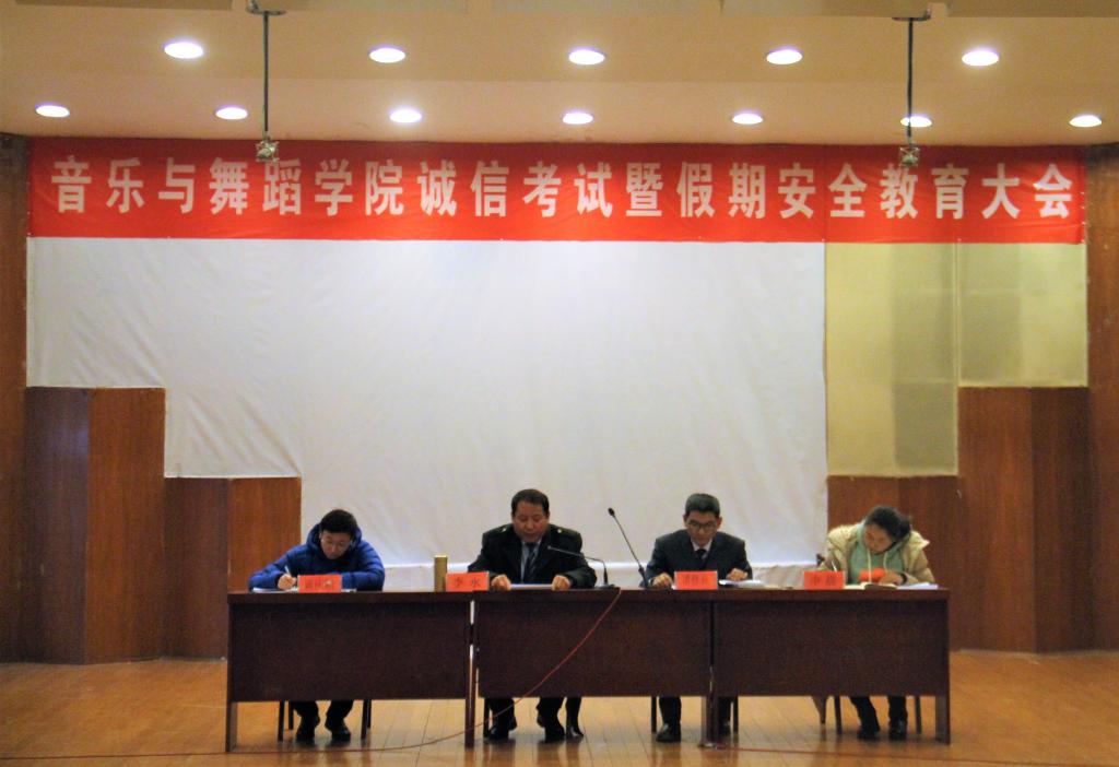 为全面落实立德树人根本任务,推进教育公平,推动考风考纪教育、诚信考试教育逐步实现制度化、常态化、规范化,营造公平、公正、和谐的考试环境,也为了强化学生的安全教育,77779193永利官网集团于2017年1月11日下午在音乐厅召开了“77779193永利官网集团诚信考试暨假期安全教育大会”。77779193永利官网集团院长李永同志、党总支副书记谭胜兵同志、全体辅导员班主任老师,2016级和2017级全体同学参加了本次大会。李永同志主持了会议。