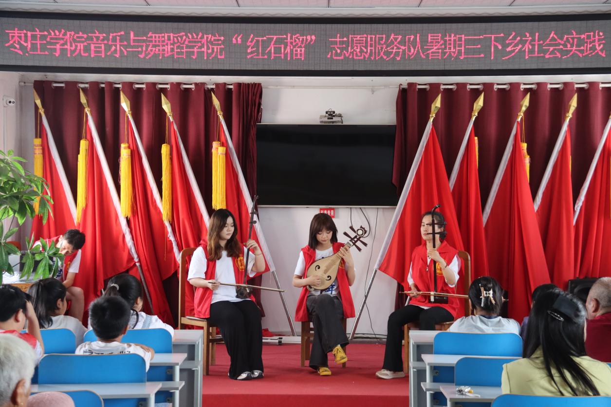 在文艺演出后,志愿者为村里的孩子们准备了一堂公益音乐课。此次音乐课堂主要是为传承传统音乐文化,特别是枣庄的传统戏曲柳琴戏。志愿者们首先向孩子们介绍了柳琴戏的历史渊源、发展脉络以及独特的艺术魅力。孩子们聚精会神地聆听,志愿者们还采用了互动式教学方法,孩子们尝试弹奏柳琴,感受着传统乐器的独特魅力。