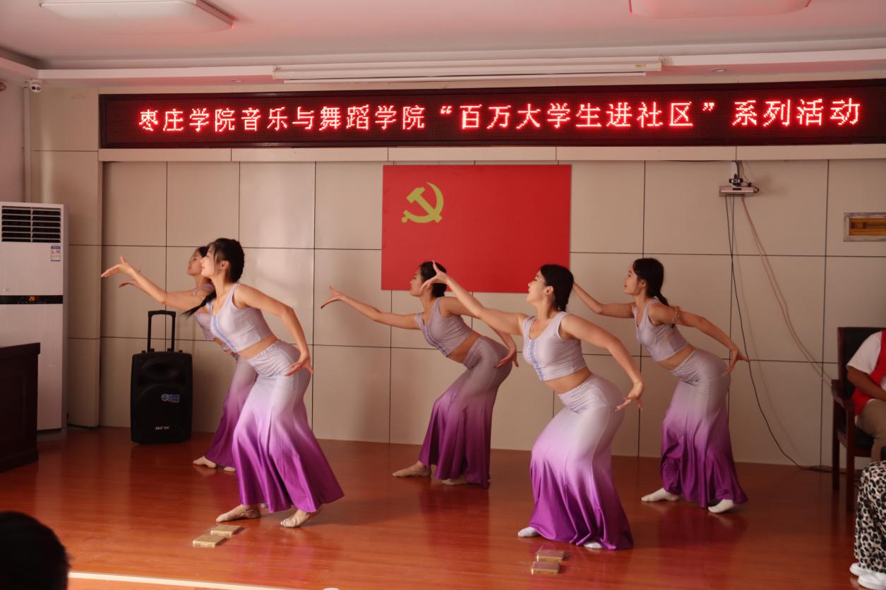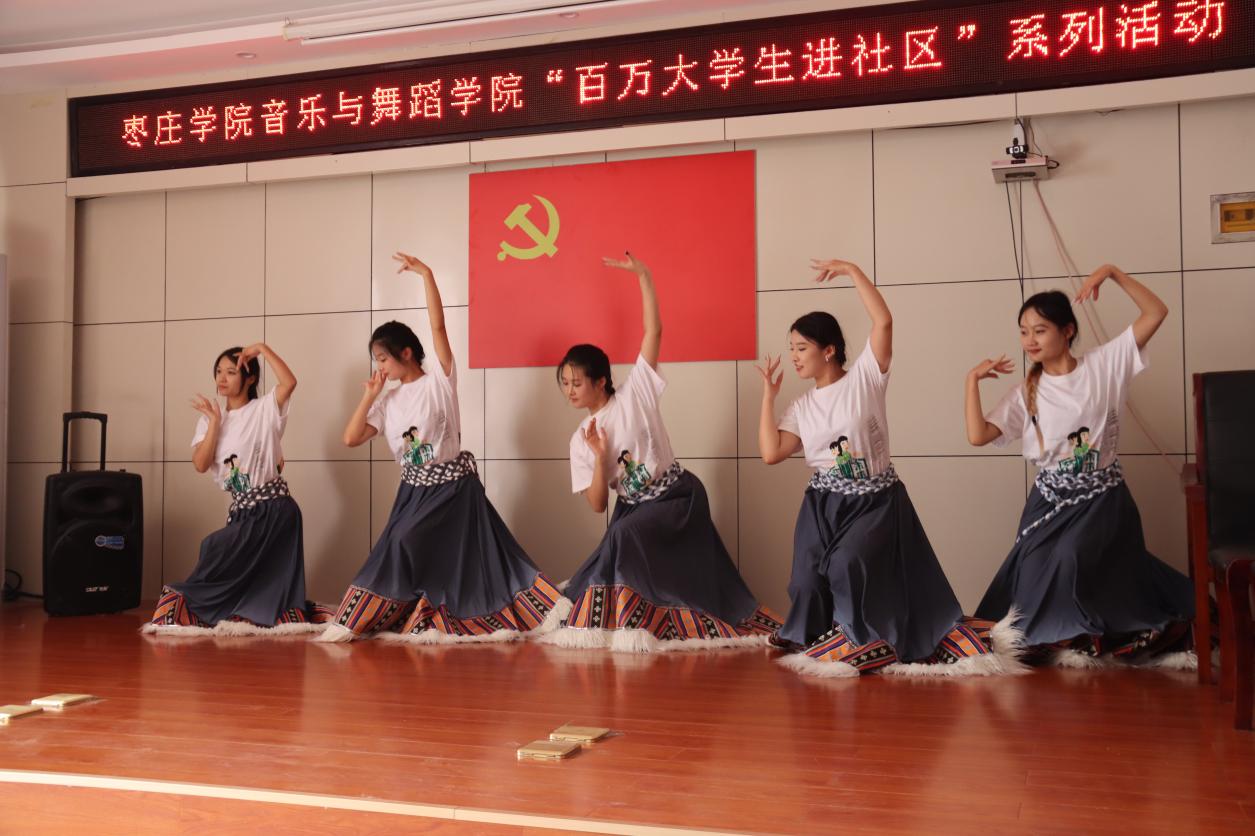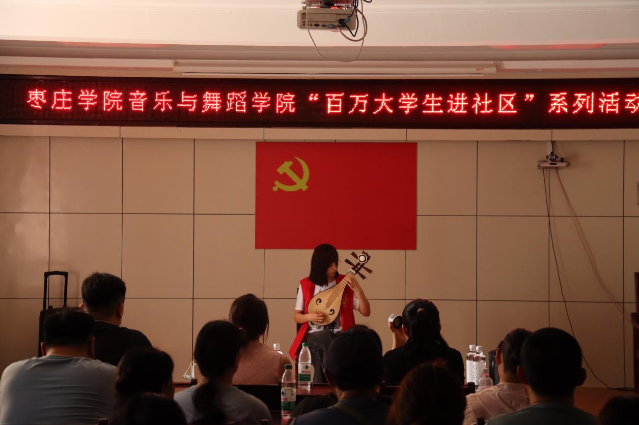 活动开始,一曲美声独唱《两地曲》迅速点燃了现场的气氛。群舞《花儿》中舞者们灵动的身姿、整齐的动作,赢得了观众们热烈的掌声。紧接着,志愿者用一首经典的歌曲《奔跑》传递着积极向上的人生态度,民乐独奏《小八路勇闯封锁线》、《雨后庭院》、美声独唱《灯火里的中国》、《不忘初心》的精彩演绎将演出气氛推向高潮。群舞《孔雀飞来》充满了民族风情,民乐合奏《赛马》也展现出了民族的豪迈与激情。整个演出现场气氛热烈而融洽,同学们的精彩表现获得了社区居民的一致好评。