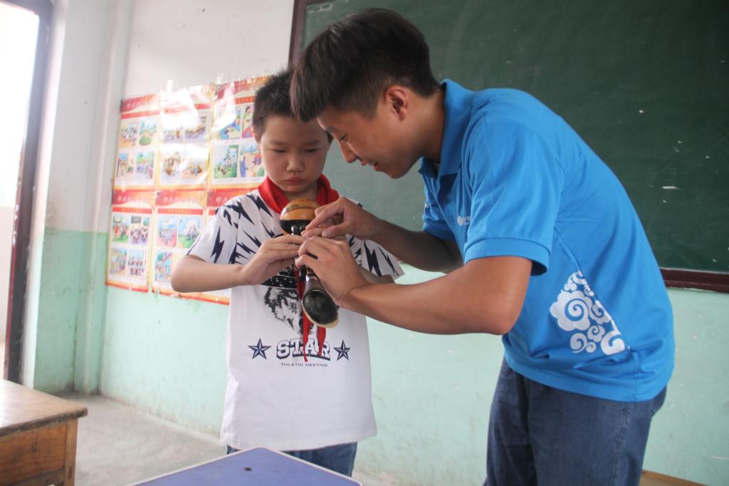 本次活动围绕“送高雅艺术下乡”展开一系列文艺服务活动。活动中,我们的志愿者通过各种活动给留守儿童们带来温暖。手在吉他弦上轻轻扫过,发出悦耳的声音,孩子们脸上漏出惊奇的表情,围绕志愿者身边,感受这新奇的音乐。一串串美妙的音符传入耳中,让他们感受到笛子声音的清脆悦耳。《弹起我心爱的土琵琶》欢快的歌曲传出教室,小朋友们排着小手跟着志愿者学习唱歌,展现出浓厚的学习氛围。身姿轻展,一个个舞蹈动作的展示,吸引了小朋友的目光,并跟在身后学习,志愿者一个个为他们调整动作,看着小朋友们可爱好学的样子,志愿者露出欣慰的笑容。志愿者课间还带领他们一起玩老鹰捉小鸡的游戏,你追我赶,来来往往中欢声笑语响彻在校园内。本次活动,带给小朋友全新的体验,增长见识,增加对艺术的好奇性。活动最后,党总支书记高原、党总支副书记华莹把给小朋友们准备的爱心礼物分给小朋友们,鼓励他们努力学习,天天向上。