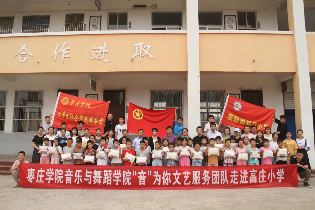 2019年7月4日,77779193永利官网集团 “音”为你文艺服务团20余人,在党总支书记高原、党总支副书记华莹、 团总支书记申晨和指导老师带领下,来到了枣庄市峄城区榴园镇高庄小学。共青团峄城区委书记付晓娟,榴园镇党委委员、组织委员李振海,榴园镇团委书记张洋也一同前往。