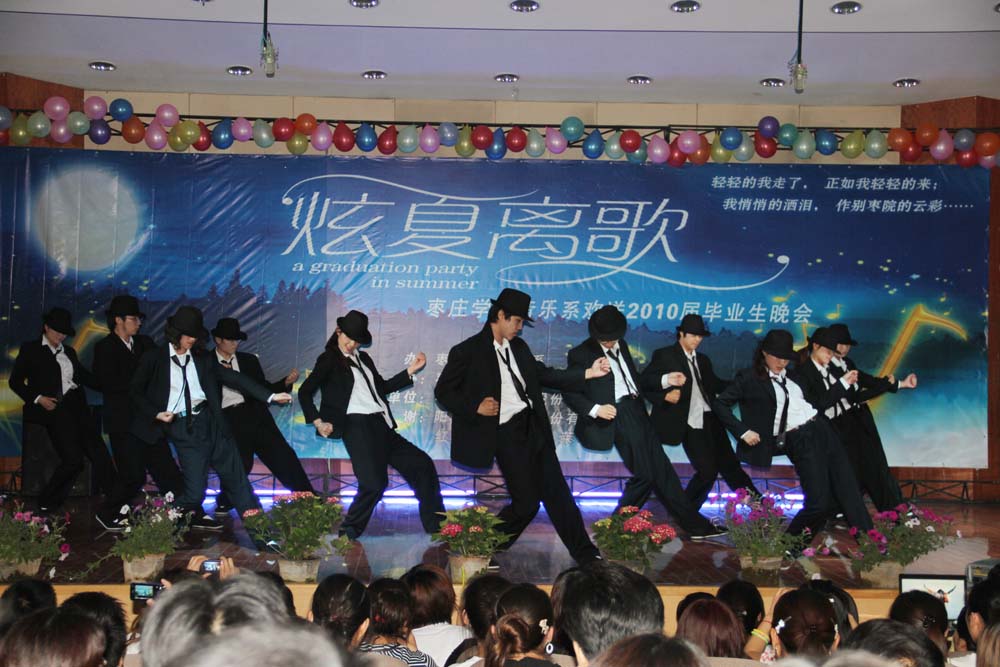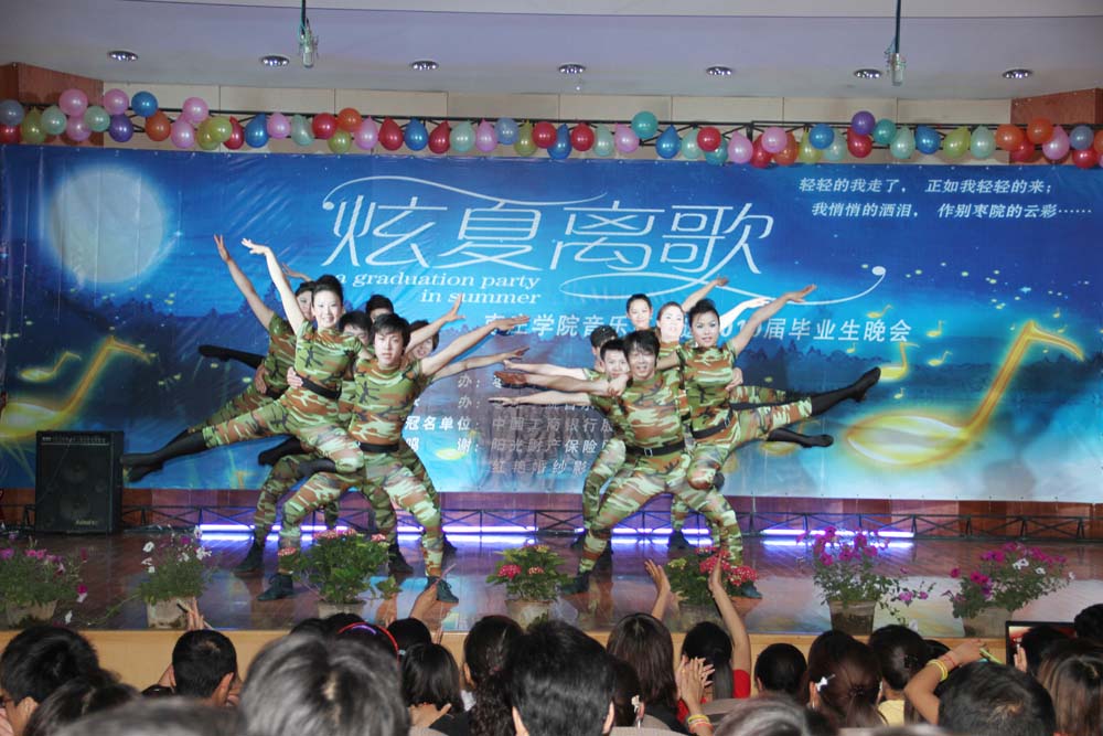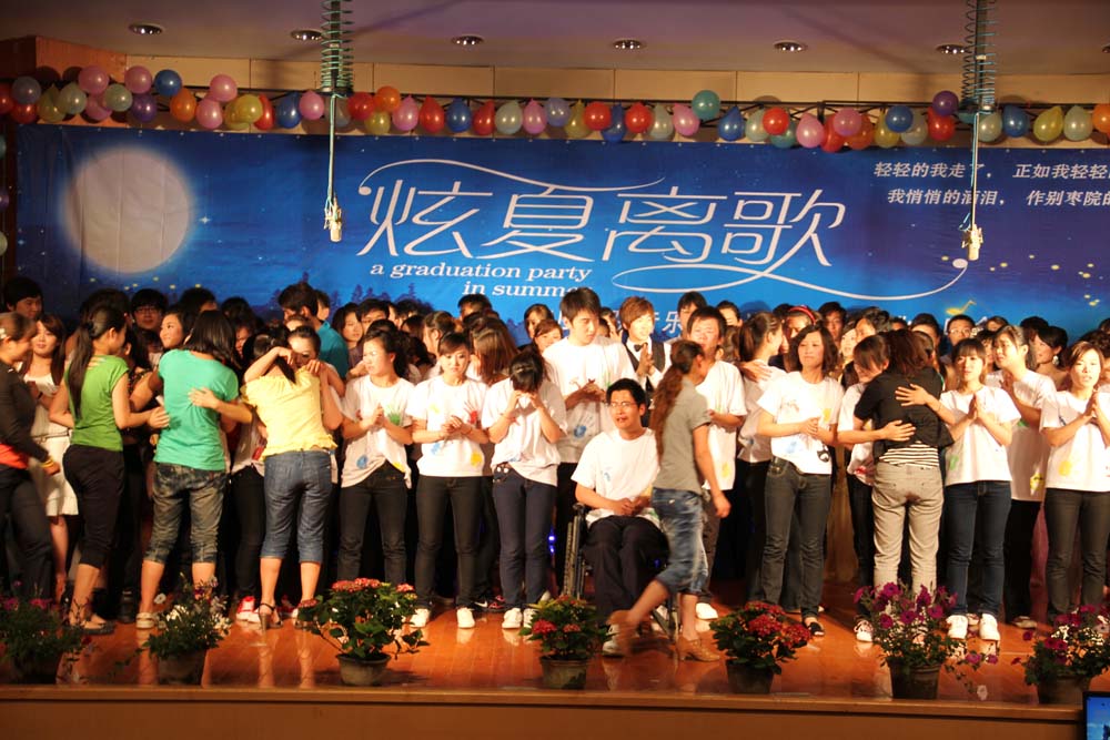 晚会在新民乐合奏《在世上唯一的花》中正式拉开帷幕。火热动感的旋律、激情肆意的舞台、璀璨夺目的灯光把现场烘托成狂欢的海洋,让所有期待以久的师生们尽情享受一顿视觉大餐。热情澎湃的《杰克逊舞蹈串烧》让在场的观众热血沸腾;女生小合唱《送别》令全场师生为之动容;管弦乐合奏《假如爱有天意》优美的小提琴与大提琴向我们娓娓诉说着伤感的离别;小品《唐伯虎点秋香之世博新篇》大胆创新,惟妙惟肖的模仿了我系几位领导老师的形象,表达了对老师深刻的感情。校园DV《我们的故事》伴随着主持人湿润的嗓音向我们诉说着2010届毕业生生活中的每一个细节,每一个瞬间和每一次感动。那饱含深情的语言读出了毕业生们的心声,表达了他们对母校的无限感恩,对老师辛勤教育的感激以及对同窗友谊的难舍之情,由07级本科3班全体同学合唱《放心去飞》,悦耳动听的音色怀揣着彼此对未来美好的憧憬与所有的观众与之产生共鸣,当坐在轮椅上患病休学的丁建超同学出现的时候,人群中爆发出阵阵掌声,经久不息,并把晚会推向了最高潮。