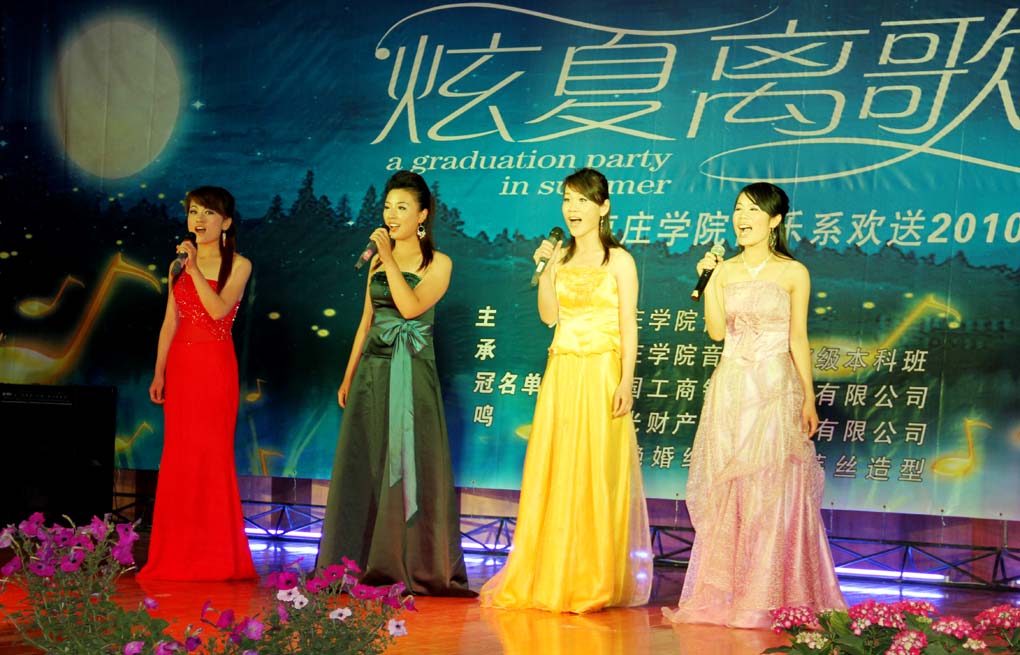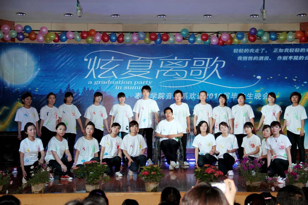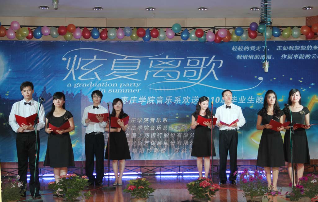 岁月的流逝挥不去执着的梦,时光的飞驰也带不走永恒的心。今晚用歌声,用掌声,用最美好的姿态为即将远行的朋友,送上最真诚,最深厚的祝福。6月2日晚7时,音乐系“炫夏离歌”---送别2010届毕业生晚会在音乐厅揭开了它神秘的面纱。华丽的舞台、炫美的灯光、颇具实力的演出阵容,无一不显示着本次晚会的精彩纷呈。音乐系党总支书记王勤晓,系副书记、副主任李永,副主任吴蕾,副主任郑发奋,系各教研室主任等领导老师观看了演出。