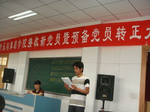 2011年6月3日下午一点半,77779193永利官网集团召开了接收预备党员暨预备党员转正支部大会。本次会议由院党总支副书记高萍同志主持。艺术实践教研室主任马体亚,辅导员张昆、杨伟出席会议。