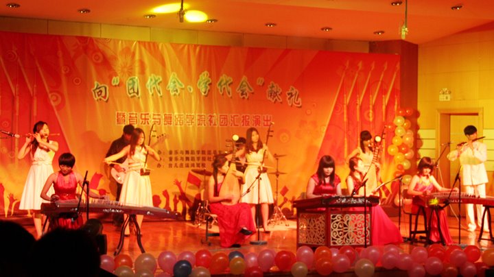 大学是梦开始的起点,随着起点乐队的《飞行》晚会正式开始。“伴随着青春的脚步,激扬青春,歌唱青春,歌唱生活。”一首原创《军装》让我们回想起难忘的军训生活。富有青春活力的女子群舞《集合在阳光下》洋溢着对大学美好生活的向往。一曲《恰似你的温柔》尽显民乐的唯美抒情。而《天空之城》为我们展现了西洋乐的安静祥和。欢快的唢呐独奏《百鸟朝凤》仿佛把我们带进了美丽的大自然中。歌伴舞《欢天喜地》喜气洋洋,让我们感受到了节日般的喜庆。还有那引人发笑的小品《新闻调播》以喜闻乐见的形式展现了丰富多彩的校园生活。由外聘教师华昱麟与我院学生共同演奏萨克斯乐曲串烧,把节目推向了高潮。最后一曲新民乐合奏《奇迹》结束我们此次的汇演。