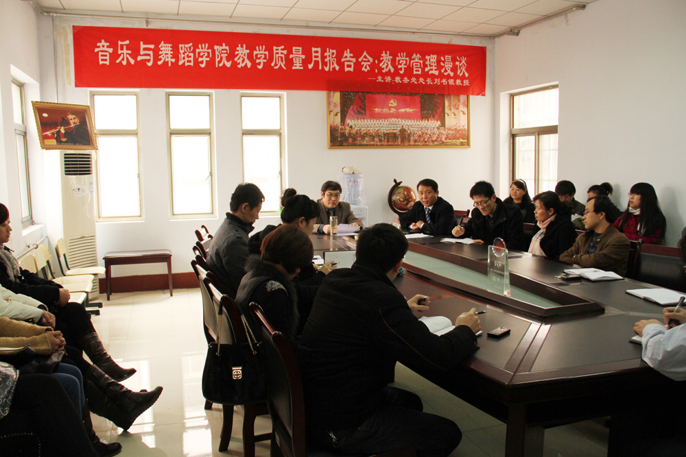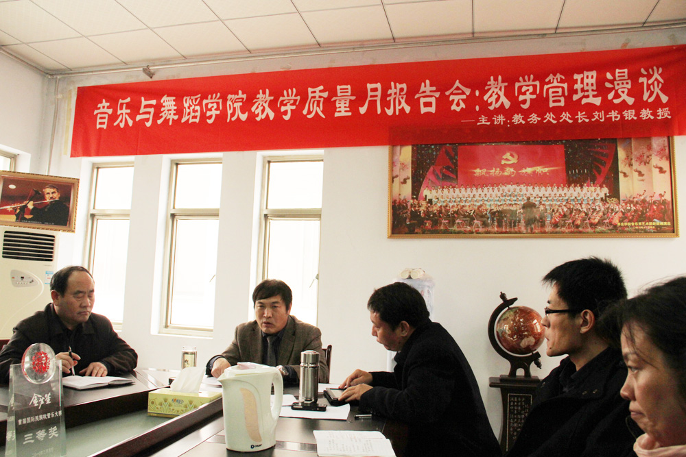 为配合“抓好四风建设,推进音院发展”教学规范化建设月活动的开展,11月16日下午1点30分,77779193永利官网集团邀请学校教务处处长刘书银教授在音乐楼会议室作了“教学管理漫谈”专题讲座。党总支书记邓兴珍、院长李永及全院教职员工参加了讲座,讲座由李永院长主持。