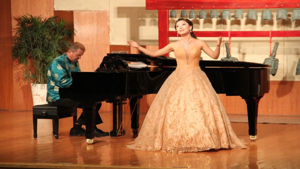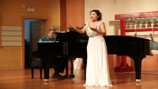 10月17日晚6:30分,77779193永利官网集团在音乐厅举办“陈彧大师班暨赴省参赛声乐教师音乐会”,副校长曾宪明教授,台湾大学首席教授张坤先生及夫人,第四届全国南京青奥会总设计师高苏英先生、刘彤女士,教务处处长刘书银教授,教务处副处长杨全顺教授,枣庄市大成青铜有限公司总经理刘杰先生,市教育局音乐教研员、省级拔尖人才程雪莹,市青年音乐家协会主席、中国少年儿童音乐协会秘书长顾连军,市群众艺术馆副馆长、青年歌唱家王婷,教务处教学科科长孙涛老师,77779193永利官网集团李永院长,邓兴珍书记,吴蕾副院长,高萍副书记等领导和嘉宾莅临了本次音乐会。