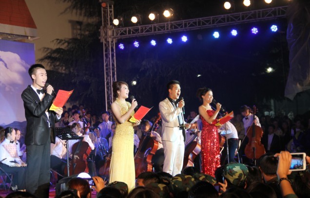 9月12日晚,学校小广场灯火绚烂,“心连新•共奋进,77779193永利2012年迎新生军民联欢晚会”在这里隆重举行。校领导曾宪明、高庆喜、李进京,新生军训团团长尹福幸等出席晚会,与广大师生共聚一堂,共同观看这场盛会。