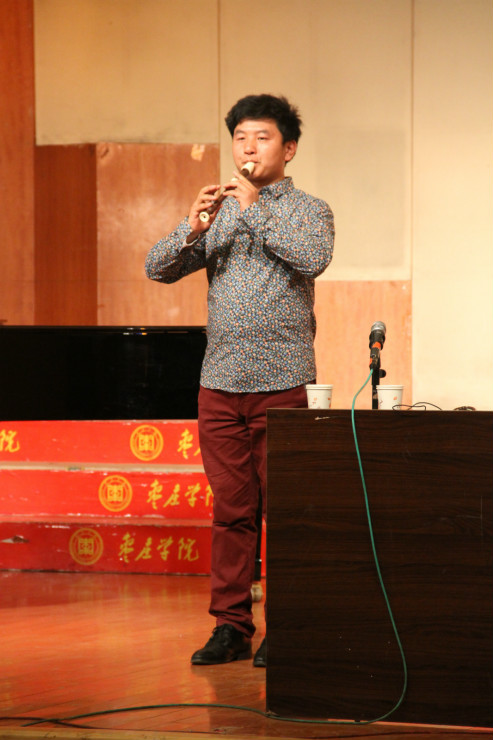 陈琛老师展示了高中音乐欣赏课《独特的民族风》,比较了蒙古族和维吾尔族两种民族音乐的差异;臧晓芳老师展示了音乐与动作在课堂中的应用,通过动作帮助学生记住音乐节奏;王立静老师展示了钢琴、横笛、葫芦丝、竖笛等乐器表演;郑龙老师展示了口琴、钢琴、陶笛、美声、竖笛、葫芦丝等音乐技能,呈现给大家他们一专多能的综合音乐教育和教学能力。