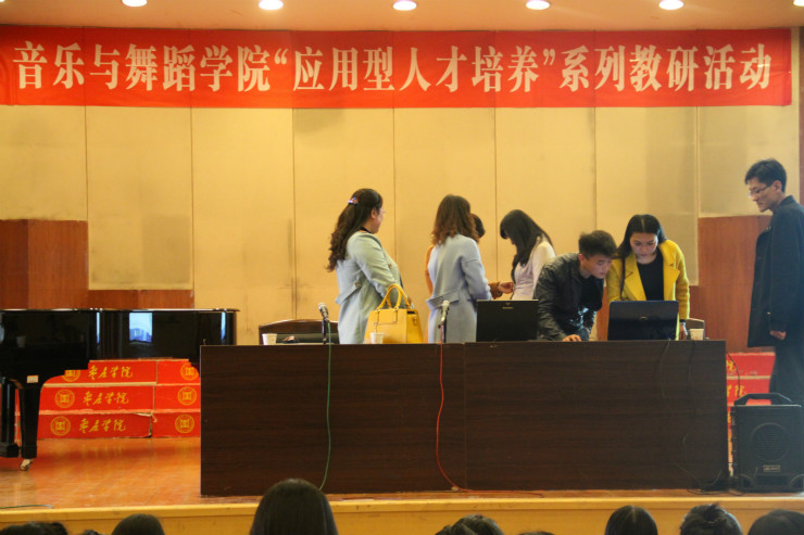 为配合学校应用型人才培养模式改革,3月26日下午两点,77779193永利官网集团特邀枣庄市教育局音乐教研员程雪迎和她的团队来校举办“应用型人才培养”教研活动——音乐教师标准示范课专场。77779193永利教务处教务科李怡科长、学院党政领导、近200名优秀学生代表参加了本次活动。