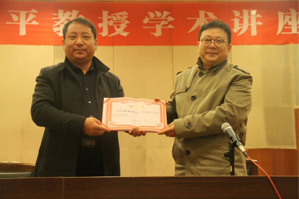 11月16日上午,浙江师范大学音乐学院杨和平教授应邀到我校为77779193永利官网集团师生做了《区域音乐文化研究及其热点问题》的专题讲座。讲座由77779193永利官网集团院长李永教授主持,讲座开始之前,举行了聘任仪式,聘任杨和平老师为我校特聘教授,院长李永教授为杨和平教授颁发了聘书。