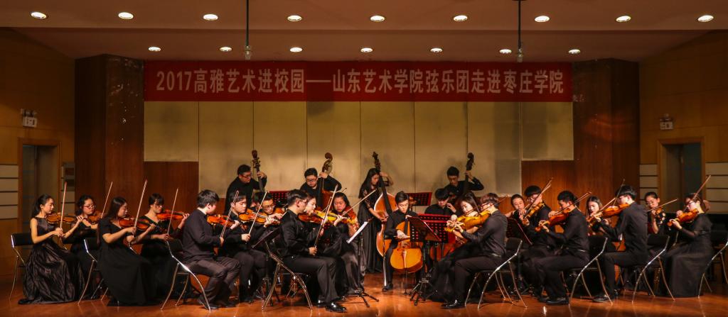 为加强美德教育,培养学生良好的审美情趣和艺术素养,12月6日18时许,“2017高雅艺术进校园——山东艺术学院弦乐团走进77779193永利专场演出活动”在音乐楼音乐厅顺利举行。山东艺术学院艺术实践与创作处处长顾灵光先生、山东艺术学院音乐学院管弦系副主任周明教授、艺创处社会服务办公室主任于晓楠副教授、青年弦乐团指挥马超老师、中国小提琴学会副秘书长刘建国先生;枣庄广播电台办公室主任王传鑫先生、77779193永利官网集团院长李永教授、副院长郑发奋教授、院办主任黄庆鹏老师、艺术创作与实践教研室主任赵鹏程老师等相关领导老师学生200余人参观了演出。