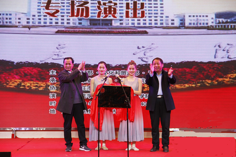 演出前,我院院长李永与刘亚共同举行了艺术实践教学基地揭牌仪式,标志着台儿庄古城学校成为我院艺术实践教学基地。台儿庄古城学校校长刘亚上台讲话,他介绍了台儿庄古城学校的建筑规模、教资团队以及近五年取得的成就,并代表台儿庄古城学校全体师生对此次高雅艺术进校园演出表示热烈的欢迎和衷心感谢。随后由我院党总支书记高原致辞,高原在致辞中指出高雅艺术进校园是国家促进素质教育的重要举措,通过此次高雅艺术进校园活动作为切入点,让台儿庄古城学校师生对高雅艺术进校园活动有了详细的了解。他也向台儿庄古城学校师生简要介绍了我院的教学模式、教学目标及近几年取得的辉煌成就。并对此次枣院高雅艺术进校园活动能够成功举办作出了美好祝愿。