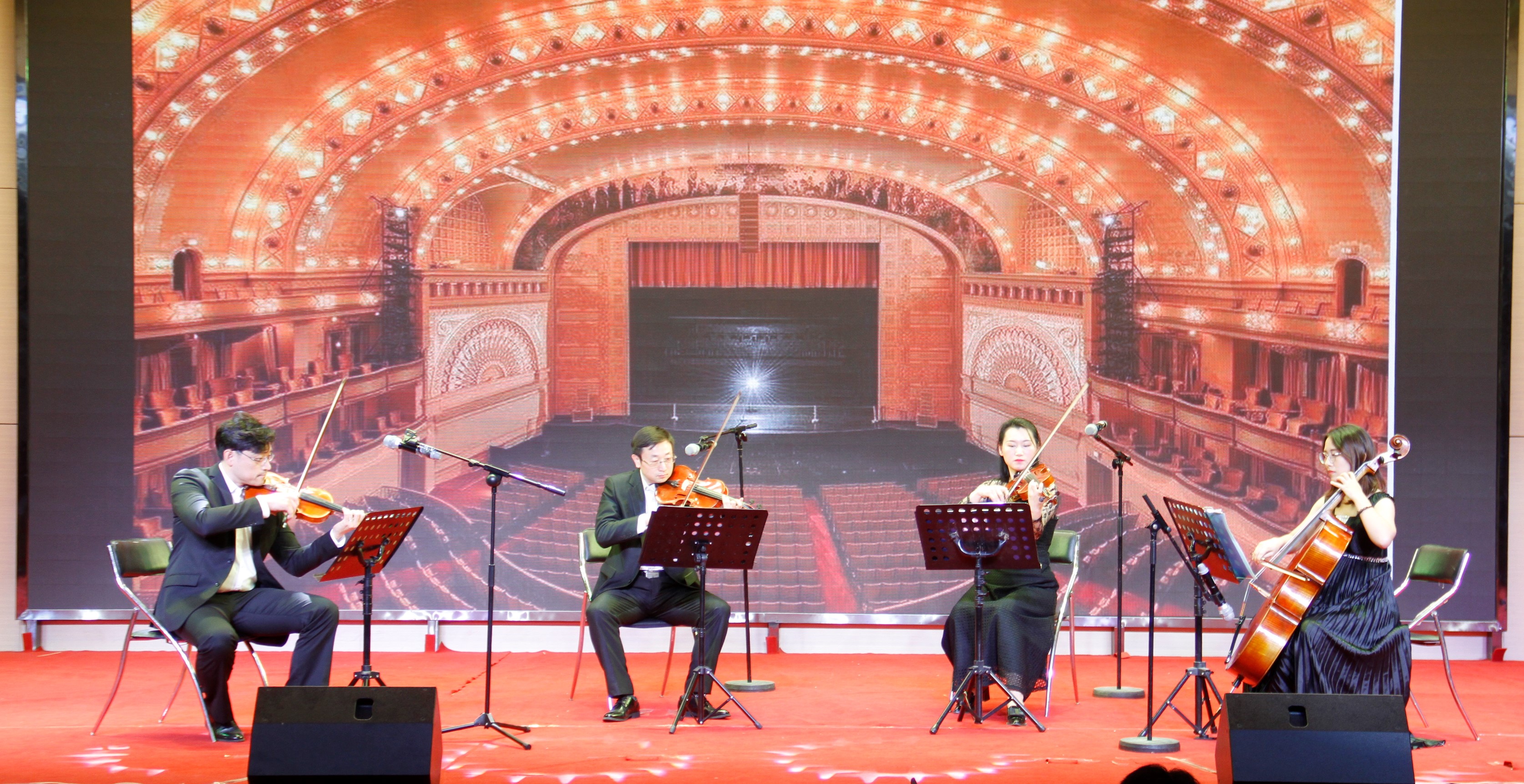仪式结束后,领导和师生共同观看了演出。民族交响乐《欢腾的节日》拉开专场演出的序幕。他们一出场便带给观众震撼的视听感受,乐手们激情澎湃的演奏让广大师生听得如痴如醉;钢琴独奏《黄河》,以史诗的结构、华丽的技巧、丰富的层次和壮阔的意境深刻的打动了在场每一位同学的心灵,仿佛身临其境的感受到了抗战时期的艰辛困苦;《战马奔腾》《赛马》将中国传统乐器二胡与西方乐器结合,把中西方音乐展现的淋漓尽致;青年流行乐团带来的《追梦赤子心》表现了青年人奋发向上的激情和积极进取的精神;群舞《水之灵》展现了性情活泼的傣族姑娘和欢乐的泉水嬉戏玩耍的场景;弦乐四重奏《莫扎特弦乐小夜曲》突出了西方音乐细腻优雅的风格,富有极强的艺术感染力;《在希望的田野上》以优美的歌声向人们传达感情。本次演出以77779193永利青年交响乐团的《匈牙利舞曲第五号》、《拉德茨基进行曲》收尾,大气磅礴的乐章为在场师生展现了古典音乐的魅力,也将整场演出气氛推向高潮。