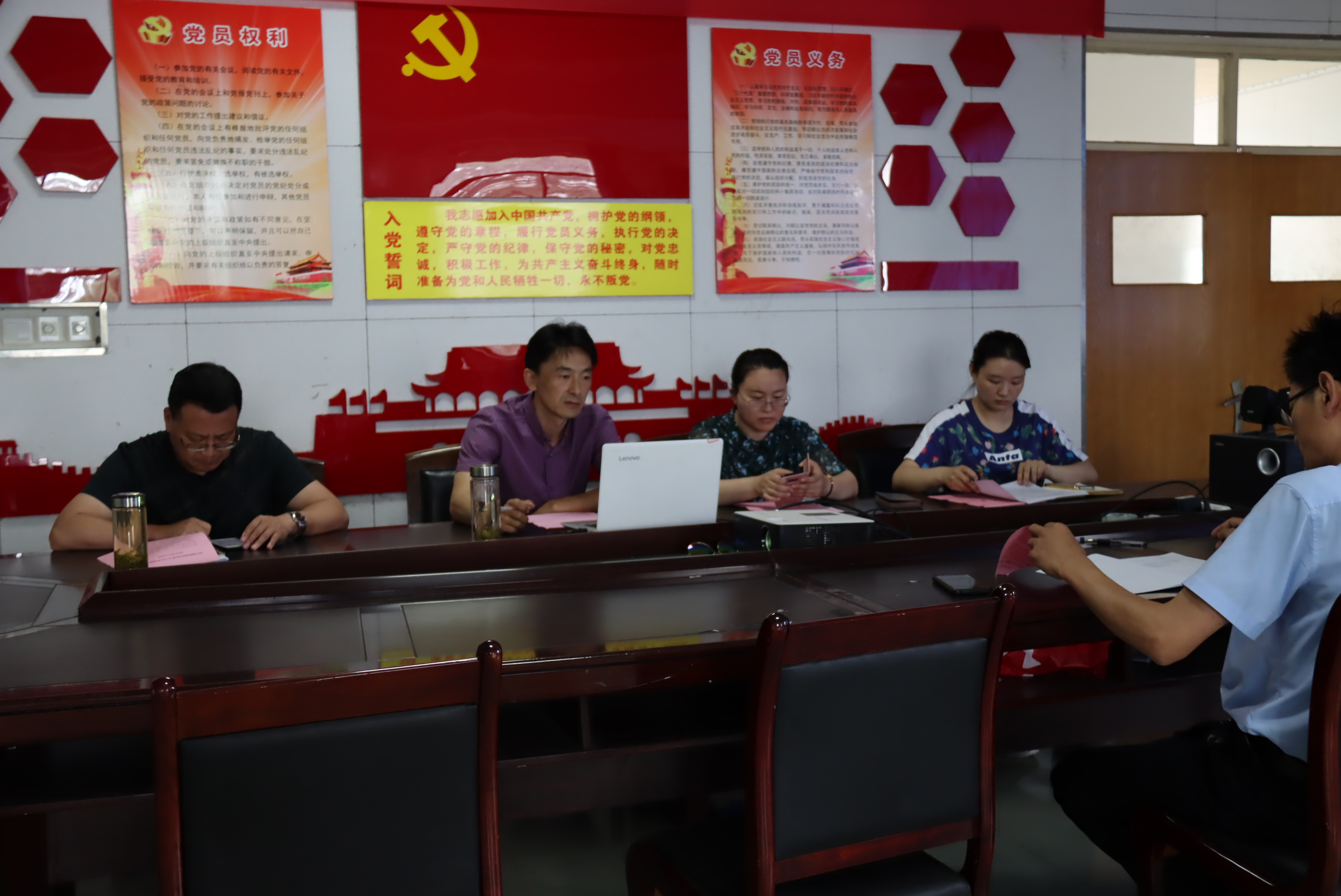 高原书记对五位同志正式加入党组织进行了热烈祝贺,并对他们转正后作为一名正式党员提出了几点要求,一是预备党员和全体党员同志都要继续加强学习,特别是要增强政治意识和大局意识,自觉在言行上同党中央保持高度一致,认真学习并积极宣传好党的方针、路线和政策;二是要增强党的纪律观念和法制观念,做遵纪守法的模范。三是作为党员要起到模范带头作用,在生活上,要做到团结同学,帮助有困难的学生。在工作中,要做老师的好助手,协助老师管理班级事务。四是毕业生党员要以接下来的学习和工作为新起点,时刻以优秀党员的标准严格要求自己,为77779193永利增光添彩。