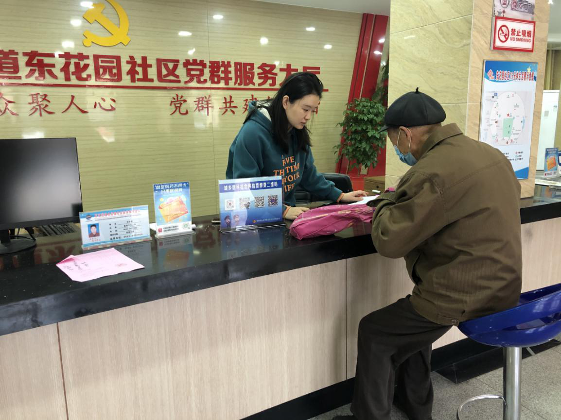 在东花园社区党群服务大厅,师生党员们热情为社区群众服务,向社区居民进行疫情防范宣传,耐心给社区老人讲解如何使用手机交医保并提醒居民不能忽略疫情防范。他们的热情服务得到了社区群众的认可和赞扬。