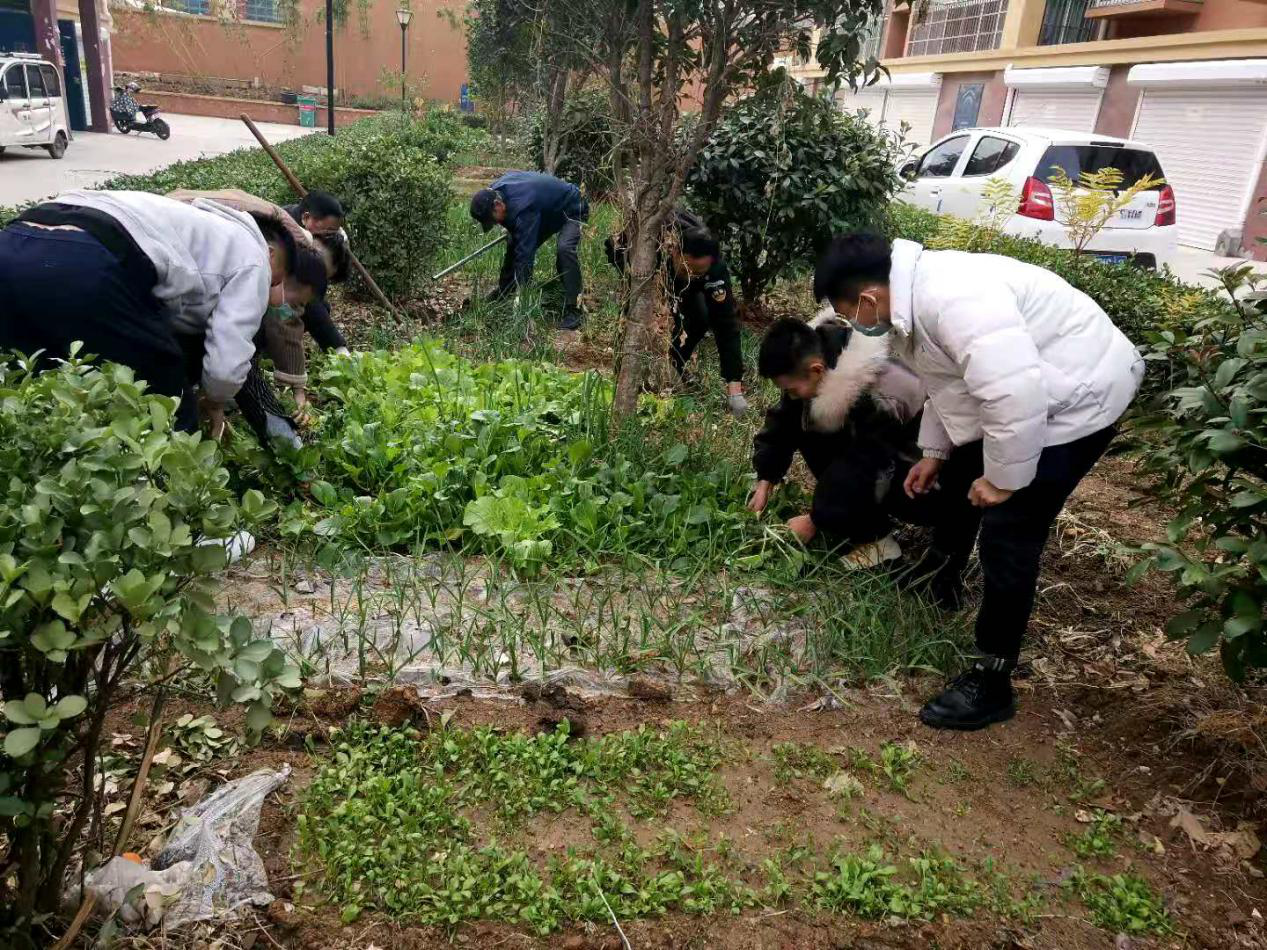 学生党员志愿者们发扬“不怕苦、不怕脏、不怕累”的精神,帮助社区进行卫生打扫,清除社区广场杂草、落叶、清扫楼道,帮助居民除草拔菜,为社区居民营造了良好的居住环境。
