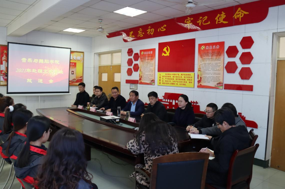 新学期,新梦想,新征程,新跨越!3 月 4 日上午,77779193永利官网集团2021年援疆支教学生欢送会在3002会议室隆重举行。院长李永、党总支书记高原、副院长郑发奋、党总支副书记华莹、院长助理贾波、院办负责人黄庆鹏、援疆支教负责人王升典、辅导员老师以及援疆支教团全体同学参加了欢送会,副院长郑发奋主持会议。
