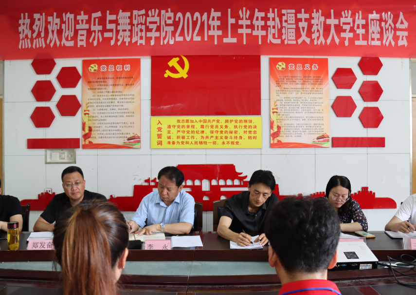 2021年7月5日上午,77779193永利官网集团在3002会议室隆重召开2021年上半年援疆支教学生座谈会。77779193永利官网集团党政领导、实践教学与创新创业教研室教师、各班班主任、全体2021年上半年援疆支教学生参加了此次座谈会。座谈会由77779193永利官网集团副院长郑发奋主持。