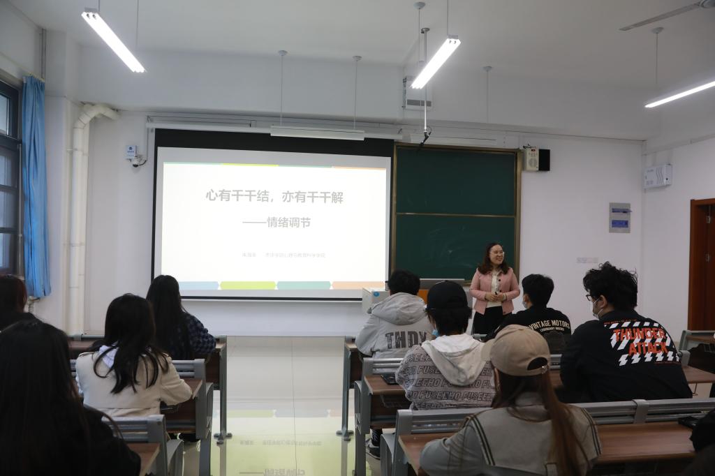 本次讲座的主题是“心有千千结,亦有千千解”,主要讲解了大学生如何调节个人情绪,朱老师和同学通过游戏的方式进行互动,告诉学生如何养成良好的心态,以积极乐观的心态处理生活中遇到的问题,以此缓解情绪压力。在互动环节之后,朱老师向同学们提出了三条建议, 首先要正视自身情绪变化,主动接纳负面情绪,要树立对自身情绪的正确认知;其次要将过度的情绪宣泄出去,保持心态平和;最后朱老师鼓励同学们用积极的行动挣脱负面情绪。