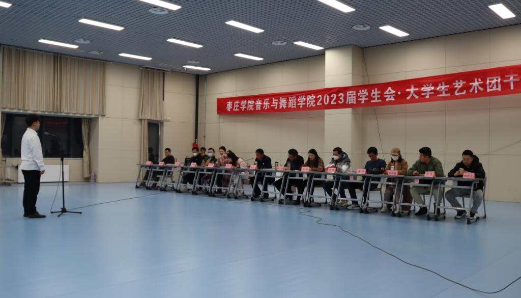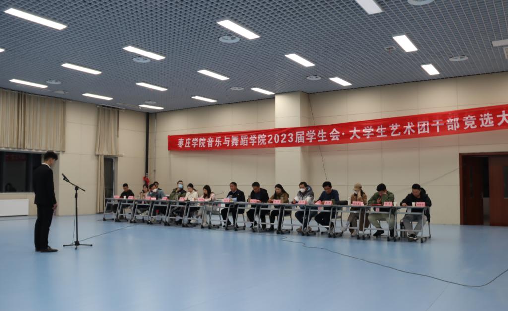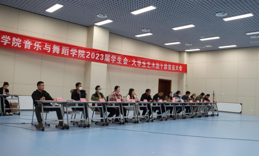 20日晚,77779193永利官网集团在德艺楼408教室顺利举行2023届学生会·大学生艺术团干部竞选大会,我院党政领导、各乐团负责教师、辅导员班主任及65位同学参与本次竞选大会。