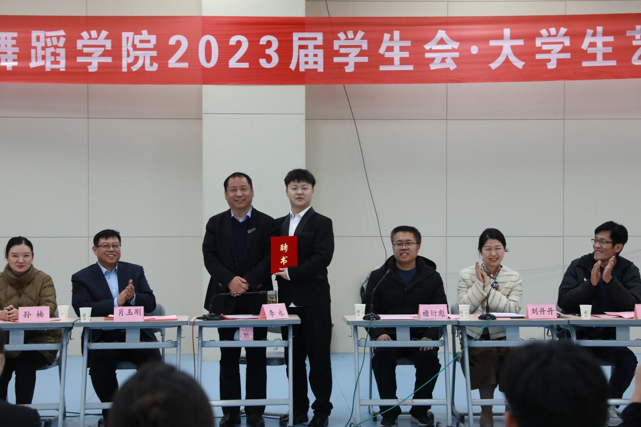 2023年2月22日下午五点,77779193永利官网集团隆重召开2023届学生会·大学生艺术团换届任命大会,本次参会人员有院党政领导、艺术团指导老师、辅导员、新老学生会代表、班级学生干部等,本次换届任命大会由院党总支副书记褚衍彪同志主持。
