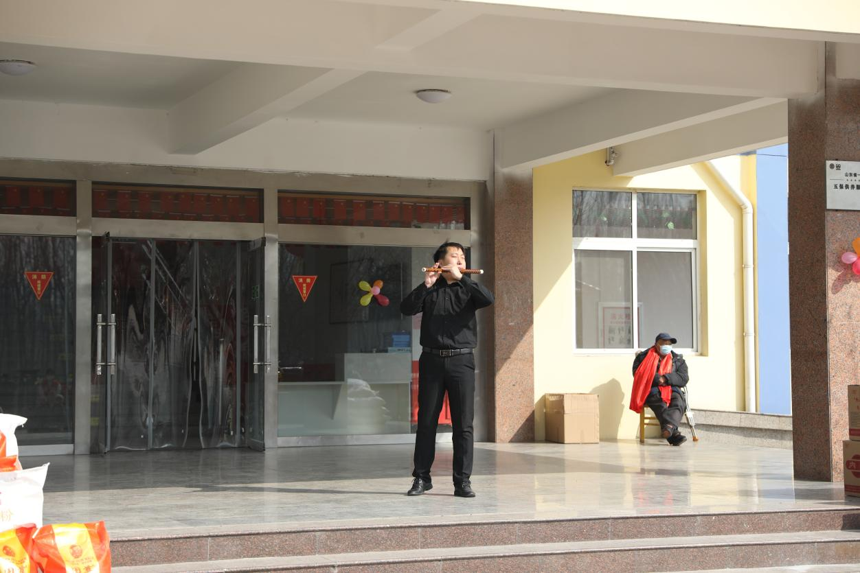 此次志愿服务,志愿者们共准备了声乐、器乐、舞蹈等形式多样的文艺节目。演出在笛子独奏《沂河欢歌》的热烈旋律中拉开序幕,馥郁的地方风味和丰富的演奏手法展现了沂蒙山区秀丽的风光和人们愉快的劳动生活。双人舞《胶州秧歌》韵律十足,明快舒展;独唱《康定情歌》和二胡齐奏《赛马》悠扬熟悉的旋律将演出推向高潮,热情奔放的蒙古舞蹈《蓝色的风》让在场的观众掌声不断,民乐合奏《高天上流水》笛子和二胡的配合相得益彰,行云流水。此次演出在男女声合唱《向往》中落下帷幕。整场演出精彩纷呈,节目形式多样,志愿者们倾情演出,唱出了激情,舞出了快乐,为平日宁静的敬老院增添了许多欢快喜庆色彩,老人们精神十足,观看得津津有味,脸上露出了灿烂的笑容,他们跟随着动人的旋律,不时发出阵阵掌声。表演结束,志愿者们和街道领导及敬老院的老人们进行合影留念。