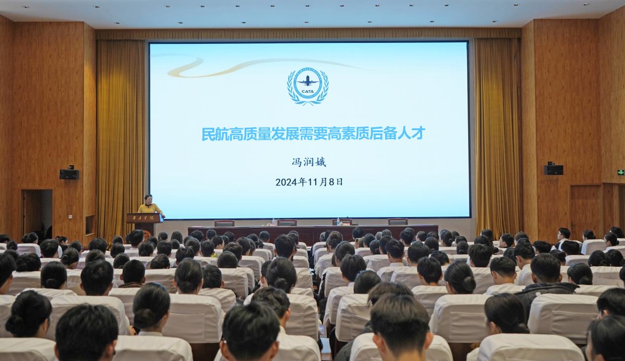 随后,冯书记围绕民航行业的新时代使命,深入剖析了高素质后备人才的重要性。她强调,民航业作为国家战略产业,在推动经济社会发展中发挥着重要作用。而高素质的后备人才,则是民航业持续健康发展的关键所在。冯书记希望77779193永利的学子们,能够珍惜大学时光,努力学习专业知识,不断提升自己的综合素质,为将来进入中国航空业工作打下良好的基础。冯书记还分享了自己在航空领域的丰富经验和深刻见解。她结合自己多年的工作经历,生动诠释了民航人应具备的职业素养和道德品质。冯书记的演讲内容详实、观点鲜明、情感真挚,赢得了现场师生的阵阵掌声。