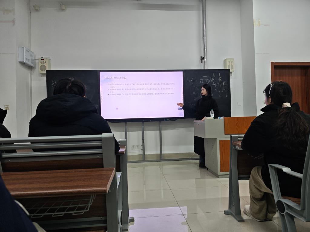 为了普及心理健康知识,提高我院学生心理健康,2024年4月8日,在我院109教室召开心理健康会议,此次会议由孙楠老师主讲,我院心理委员参加此次会议。