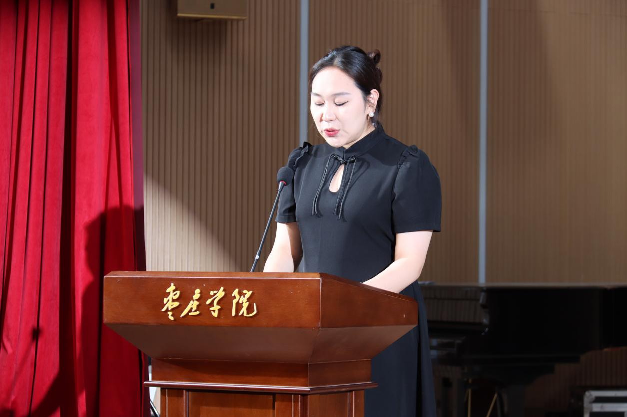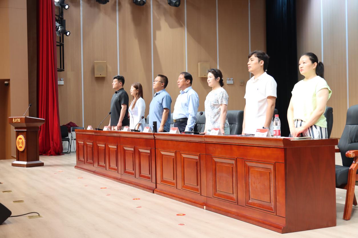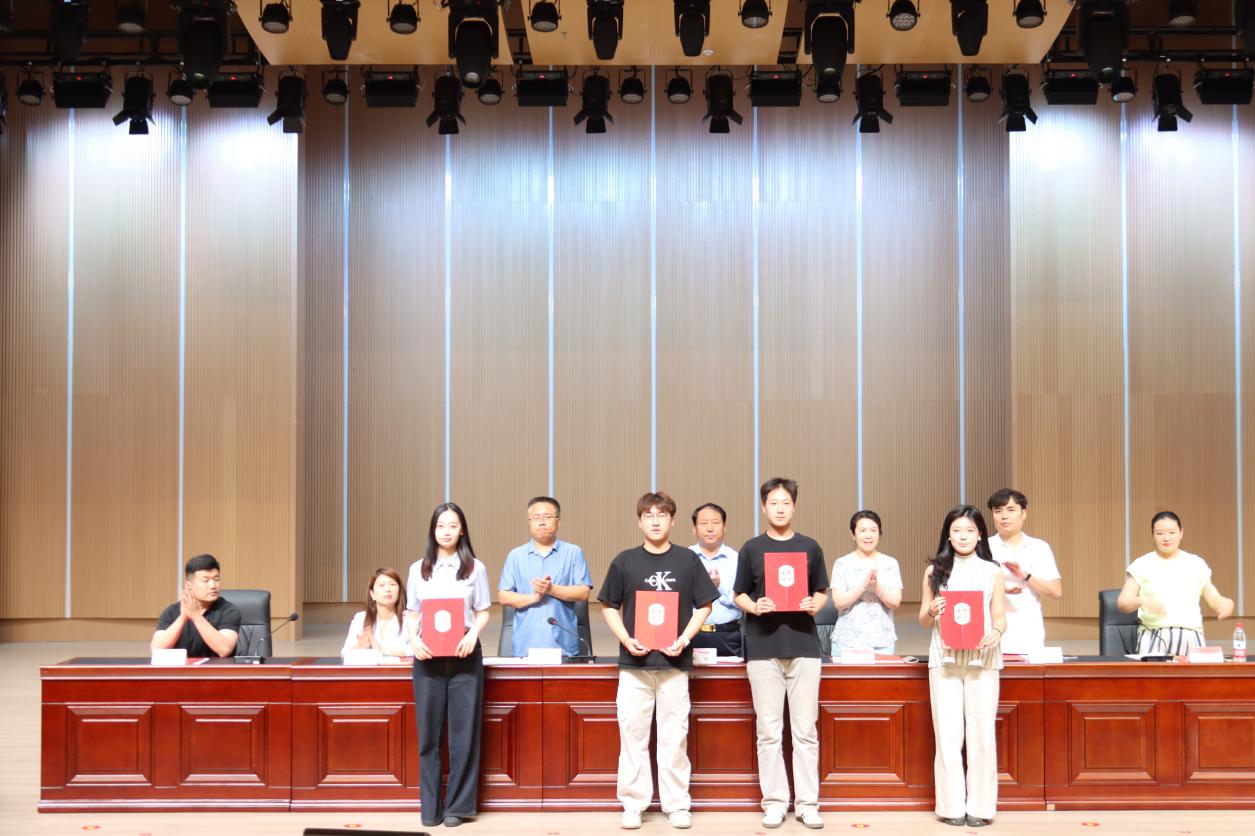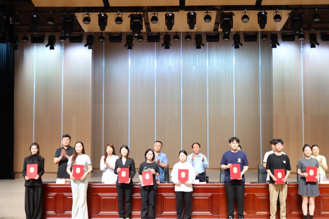 随着激昂的国歌声响起,全体参会人员起立,奏唱国歌,表彰活动正式拉开帷幕。副书记褚衍彪作为本次大会主持人依次介绍了出席本次活动的领导和老师,吴蕾院长、刘丹丹、孙楠、陈东宣读2024年度表现优秀学生名单,会场以热烈的掌声对受表彰同学表示祝贺。