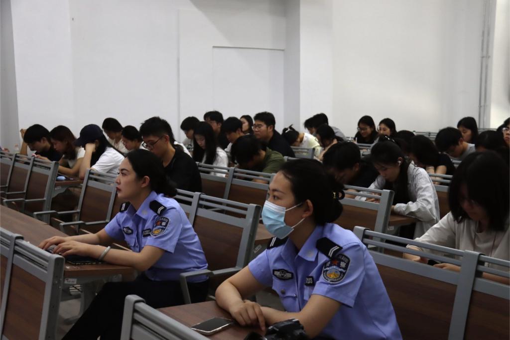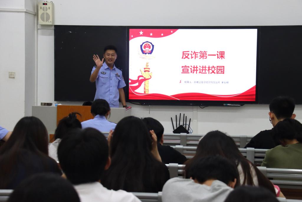 讲座伊始,单长麟民警围绕刷单返利类骗局、冒充身份类骗局、校园贷骗局、“两卡”类犯罪四类常见骗局类型深入剖析诈骗常见套路,提示并引导广大学生加强个人信息保护,加强树立防骗、识骗、拒骗意识。讲座过程中,单警官通过具体案例讲解和分析,形象生动的加深了同学们对各种诈骗类型的识别和认知。讲座结束后,工作人员向与会学生们发放防范电信诈骗宣传折页,再次提升大学生反诈骗意识。