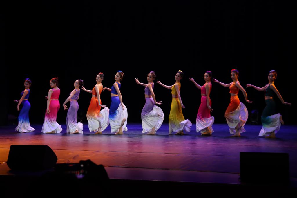 《舞韵东方》集中华民族舞蹈风格之大成,勾勒东方美学轮廓,彝族舞蹈热情奔放,踏地为节,朝鲜族舞蹈优雅含蓄,傣族舞柔美灵动,藏族舞甩袖踏步间尽显高原风情;古典舞技术技巧《龙吟竹梦间》,高难度技巧与舞蹈美感交融,跳转翻旋间,是学子们日复一日的功底沉淀,赢得阵阵惊叹。《看山看水看家乡》以质朴舞姿,抒发对故土的眷恋,展现农民沐浴在时代春风下幸福美满的生活状态和自信乐观的生活追求;《秋水遥》借舒缓韵律、悠远意境,带观众沉浸在秋水悠悠的诗意情境。