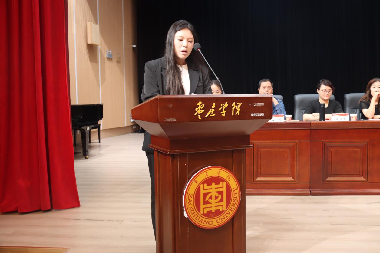 新生代表吴桐语新生代表怀着激动的心情上台发言,表达了对大学生活的憧憬与期待。他们表示,将以积极向上的精神风貌迎接未来的学习和生活,努力学习专业知识,不断提升自我,不负青春韶华,为学院争光添彩。