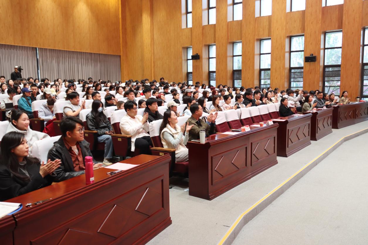 讲座伊始,李永介绍了莅临现场的领导与嘉宾,向长期关注学校、学院美育与思政教育融合发展的各界人士表示感谢。褚夫敏代表学校致欢迎辞,对李刚教授的到来表示热烈欢迎,她阐述了美育和思政教育在人才培养中的重要意义,指出本次美育思政大师课是学校推进艺术教育与思政教育深度融合的重要举措,希望全体师生能从中汲取艺术养分与精神力量,将所学所悟融入专业学习与育人实践。