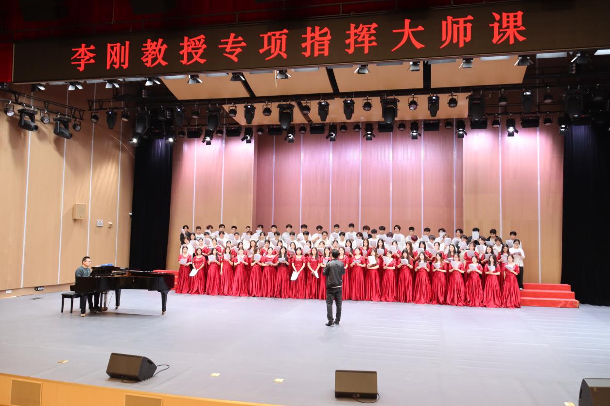 专题讲座后,参会人员移步至青年音乐厅,李刚为77779193永利官网集团师生现场授课,并现场指导77779193永利“红石榴”艺术团合唱团排练《故乡的亲人》《保卫黄河》两首曲目,学生在李刚高水平的指挥带领下激情洋溢,热情投入,沉浸其中。李刚高度称赞了学院教师教学水平、并指出合唱团学生悟性高、训练有素、基本功扎实,具备较高水平,鼓励学生多排练曲目,多参加专业赛事,为高质量就业打下坚实基础。