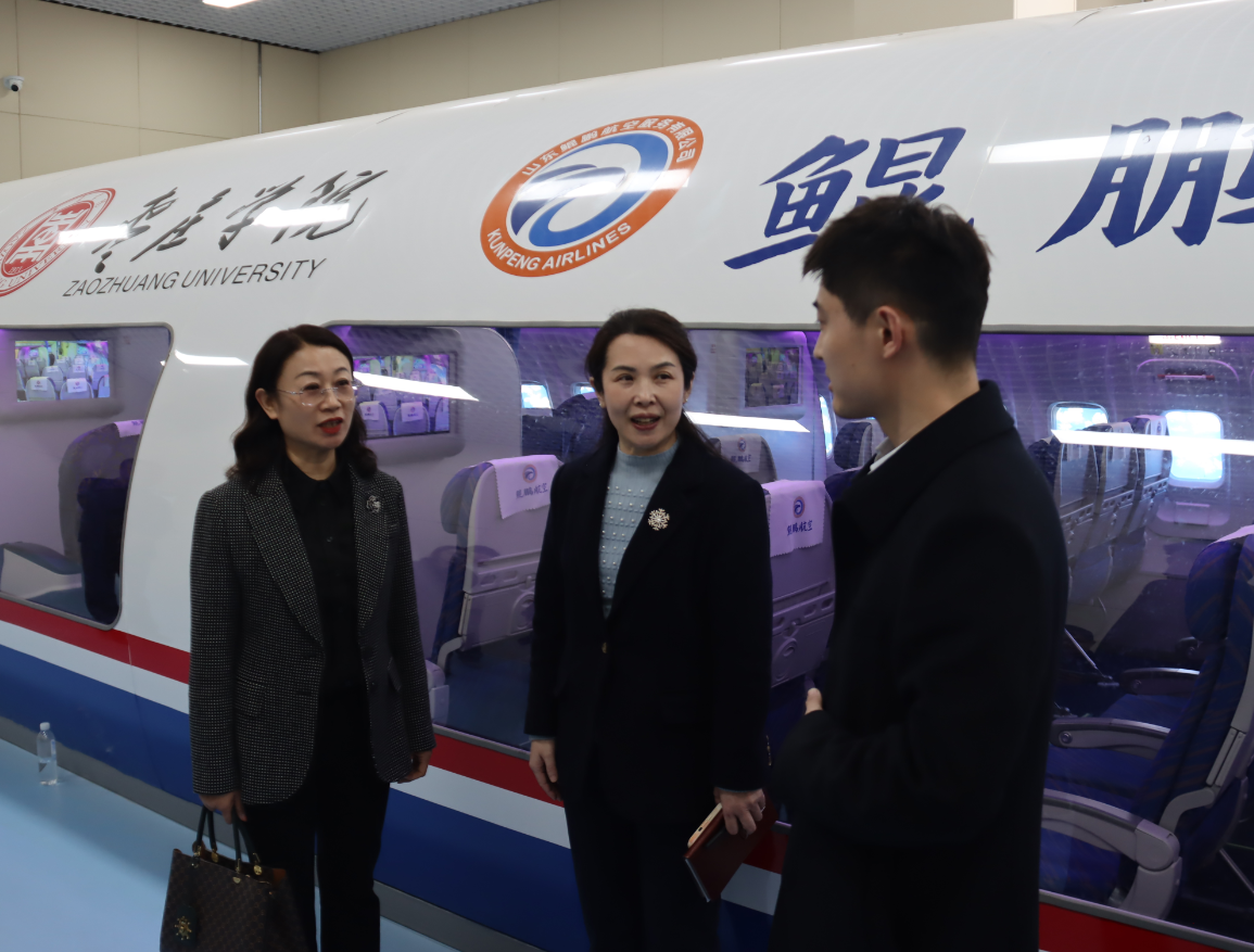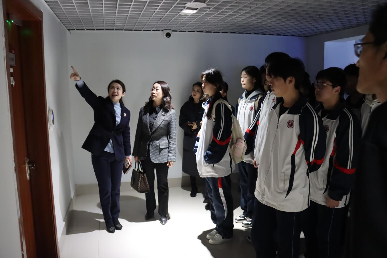 仪式结束后后,吴蕾院长带领枣庄九中一行参观了我院智慧琴房、舞蹈房、空乘静态模拟舱等教学实验场所。